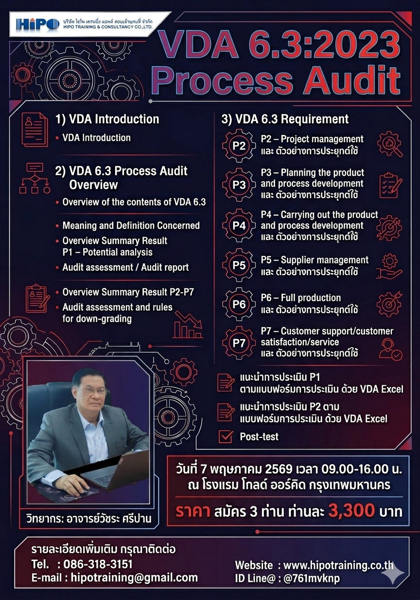 หลักสูตร VDA 6.3:2023 Process Audit (อบรม 7 พ.ค. 69)