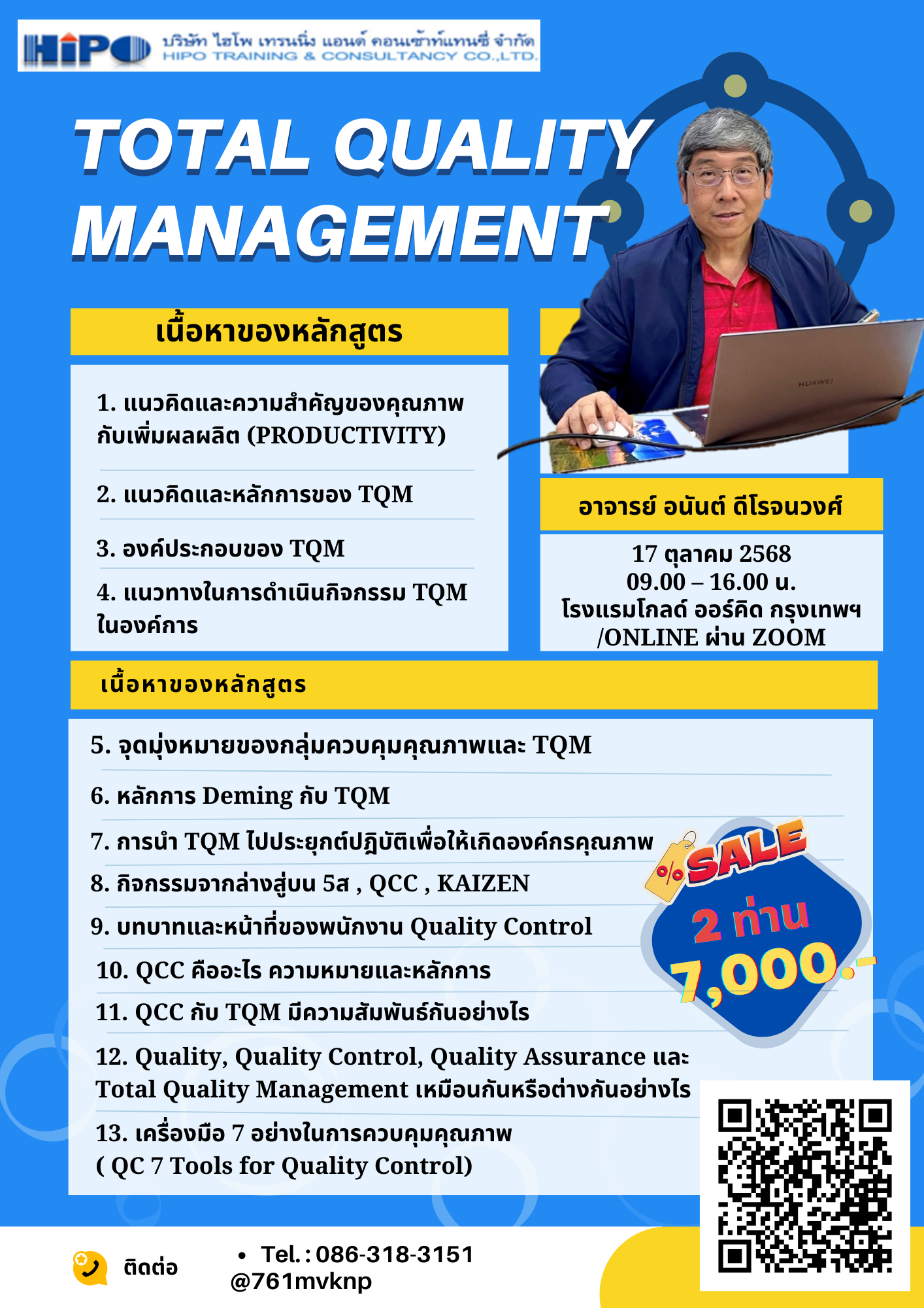 หลักสูตร การจัดการคุณภาพโดยรวม (TQM) (อบรม 17 ต.ค.68)