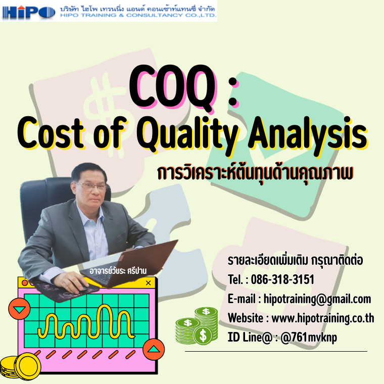 หลักสูตร COQ : Cost of Quality Analysis การวิเคราะห์ต้นทุนด้านคุณภาพ (อบรม 14 พ.ย.68)