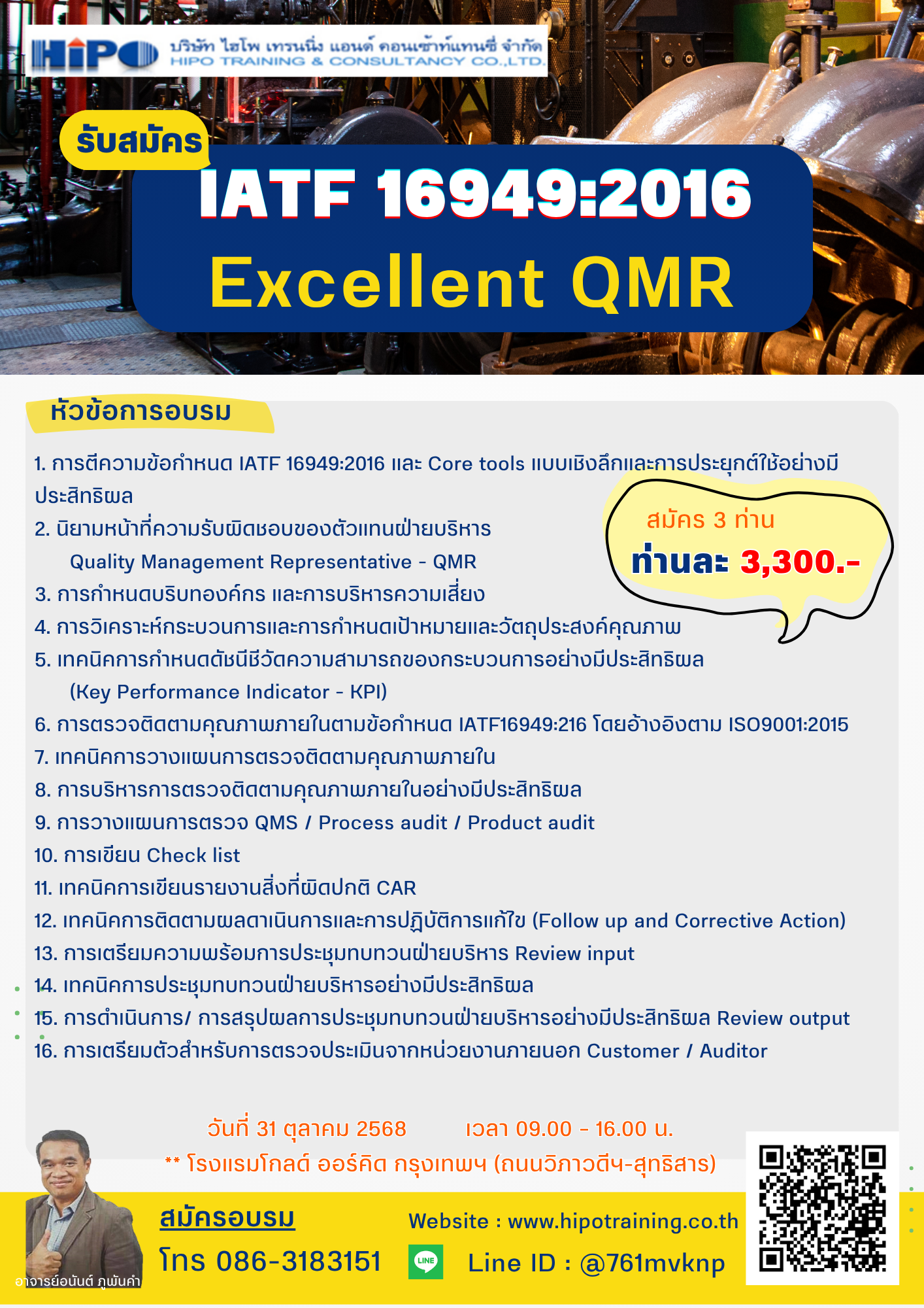 หลักสูตร IATF 16949:2016 Excellent QMR (อบรม 31 ต.ค.68)